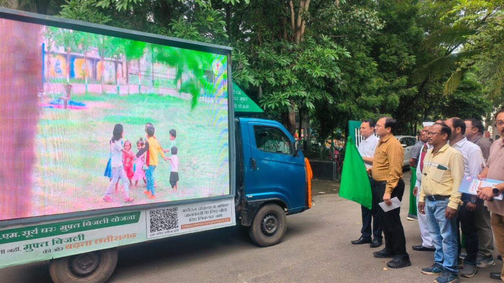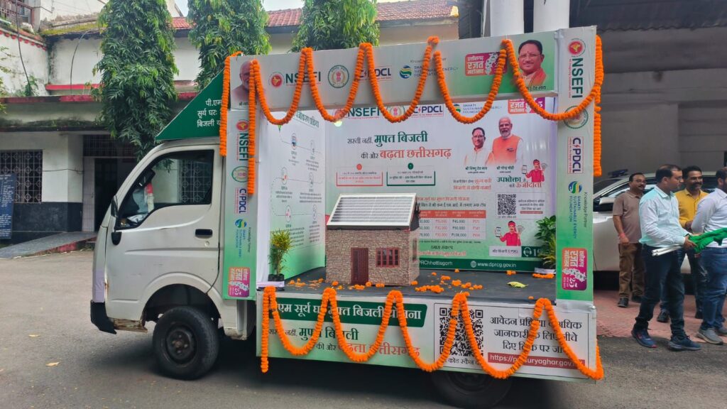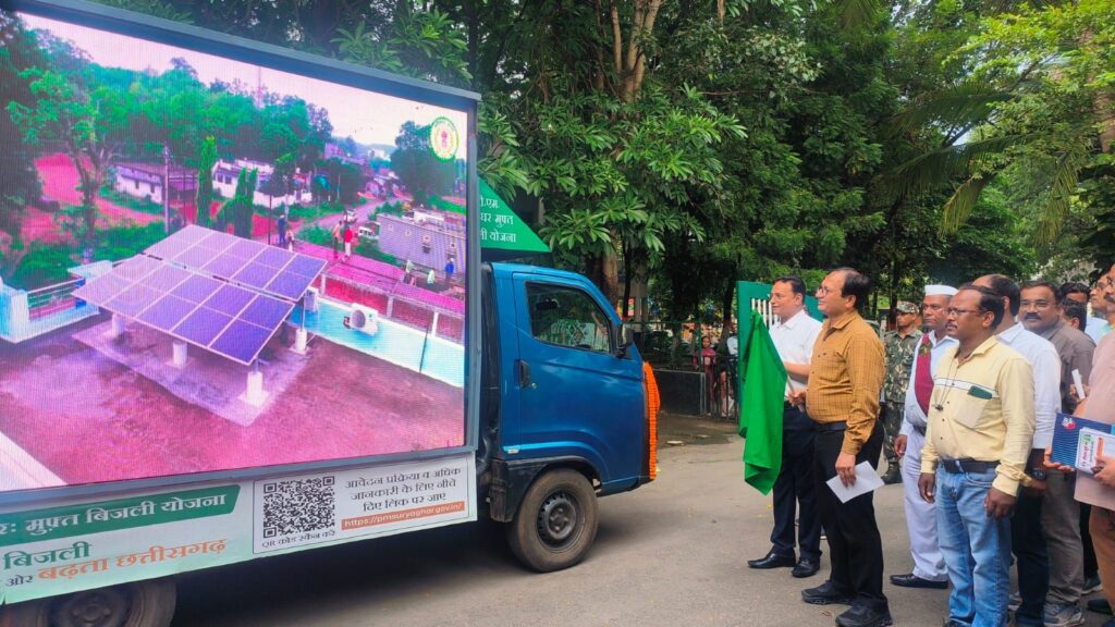 बिलासपुर, 12 सितंबर 2025 – बिलासपुर जिले में आज ‘‘पीएम सूर्य घर मुफ्त बिजली योजना’’ के प्रचार-प्रसार के लिए ‘सूर्य रथ’ की शुरुआत की गई। कलेक्टर श्री संजय अग्रवाल ने कलेक्टरेट कार्यालय परिसर बिलासपुर से इस रथ को हरी झंडी दिखाकर रवाना किया, जो लोगों को योजना के लाभों के बारे में जानकारी देगा और सौर ऊर्जा अपनाने के लिए प्रोत्साहित करेगा। कलेक्टर ने इस पहल की सराहना की और कहा कि यह योजना उपभोक्ताओं को बिजली के बिल से राहत दिलाएगी। सूर्य रथ के माध्यम से योजना का प्रचार-प्रसार किया जाएगा। जिसमें विद्युत विभाग के कर्मचारी द्वारा रजिस्ट्रेशन की जानकारी प्रदान करने के साथ ही आवश्यकता पड़ने पर रजिस्ट्रेशन करने में सहयोग किया जाएगा। सीएसपीडीसीएल बिलासपुर क्षेत्र के कार्यपालक निदेशक श्री ए. के. अम्बष्ट ने बताया कि सूचनात्मक सामाग्री एवं एल ई डी स्क्रीन के माध्यम से लोगों को जागरुक किया जाएगा। सूर्यरथ उपभोक्ताओं को सोलर प्लांट की जानकारी प्रदान करेगा।