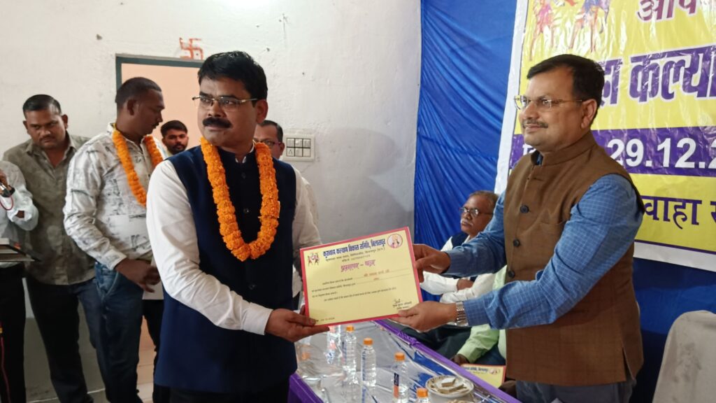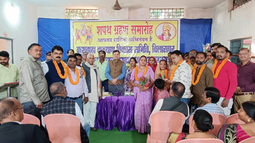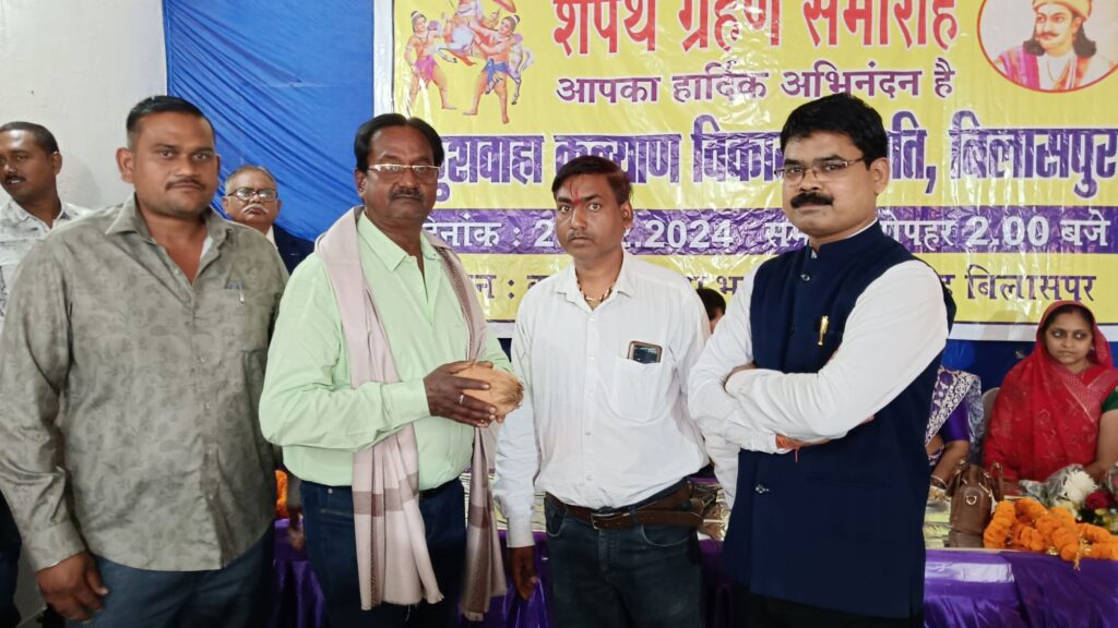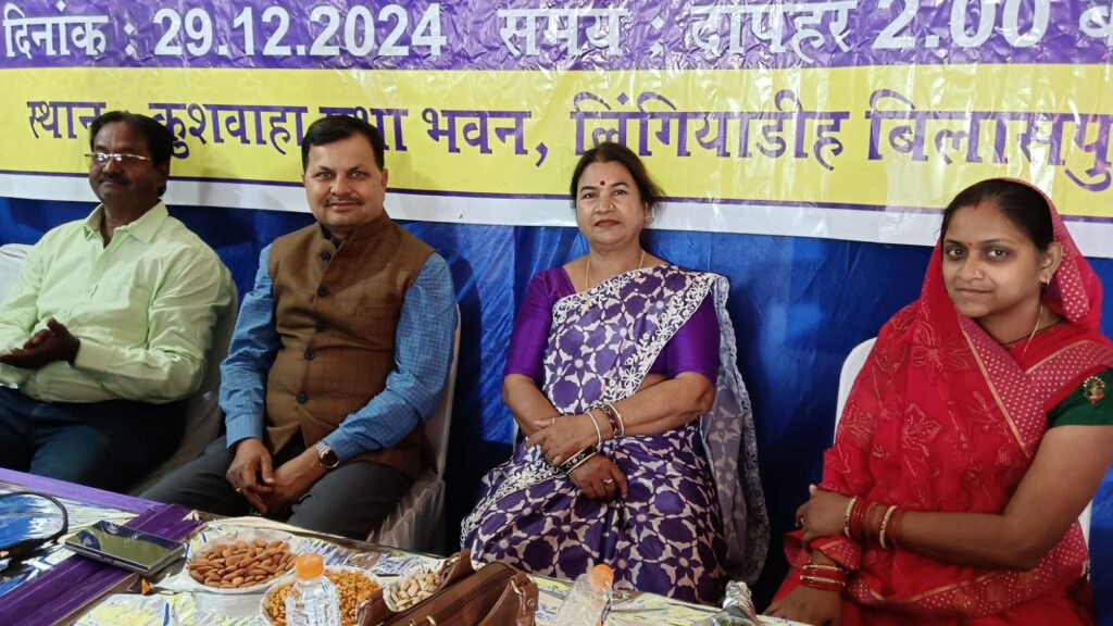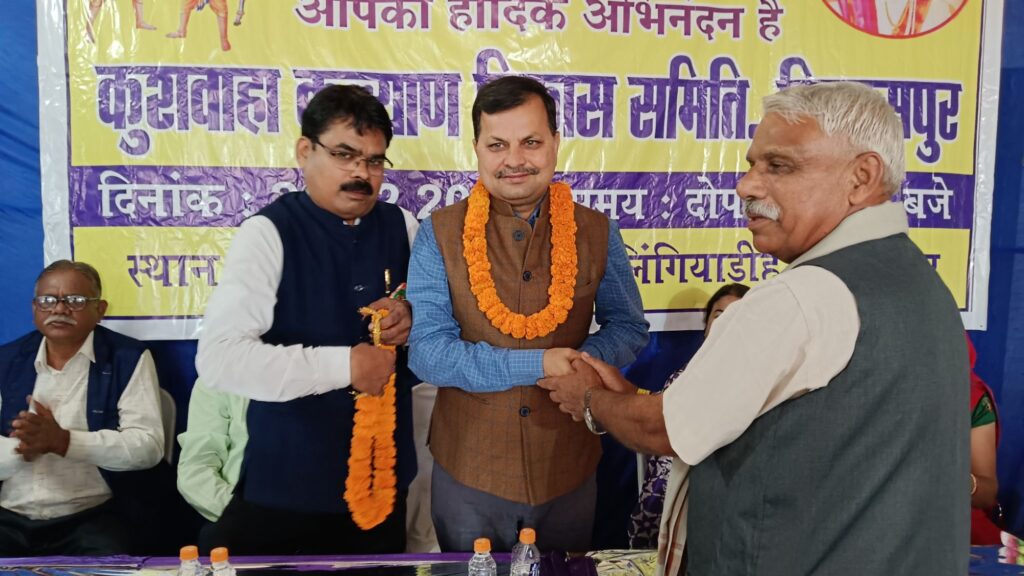 शपथ ग्रहण कुशवाहा सभा भवन लिंगियाडीह में आयोजित शपथ ग्रहण समारोह में कुशवाहा कल्याण विकास समिति की नई कार्यकारिणी ने शपथ ग्रहण किया। अतिथियों ने कार्यक्रम की शुरूआत भगवान लव कुश की पूजा अर्चना से की। अतिथियों के स्वागत और उदबोधन के पश्चात नई कार्यकारिणी को पद की शपथ दिलाई गई। इस दौरान अध्यक्ष के तौर पर ओमप्रकाश कश्यप, उपाध्यक्ष बतौर शिवदयाल कश्यप, कमल किशोर मोर्य, चंद्रिका कश्यप और अजय कश्यप के साथ सचिव नवल वर्मा, कोषाध्यक्ष रविंद्र कुशवाहा, सहसचिव सोनू शरद कश्यप, सहकोषाध्यक्ष राकेश मौर्य , आशीष कश्यप और अवधेश कुशवाहा एवं अन्य पदाधिकारियो ने शपथ ग्रहण किया। इस अवसर पर अतिथि के रूप में प्रवीण झा, मोहन कश्यप, सुरेंद्र कश्यप ,गायत्री कश्यप आदि मौजूद रहे जिन्होंने समाज को संगठित करने और आगे बढ़ाने पर जोर दिया। साथ ही सामाजिक कार्यक्रमों के नियमित आयोजन की भी बात कही गई।