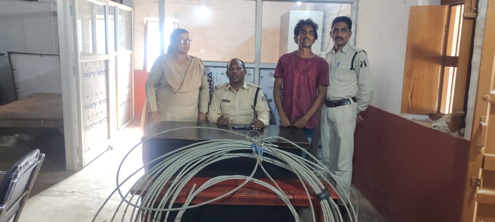 राकेश राठौर पिता स्व. सियाराम राठौर उम्र 33 वर्ष कनिष्ठ यंत्री छ.ग. स्टे.पा.डि.कं.लि.मि. खमतराई ने थाना आकर रिपोर्ट दर्ज कराया कि वह कनिष्ठ यंत्री के पद पर पदस्थ है, अपने क्षेत्र के विद्युत तार का निरीक्षण किया जाता है। निरीक्षण दौरान पाया गया कि 33 के.वी. पावर ग्रीड फीडर लाईन जो तकनीकी कारणों से वर्तमान में बद है उसे मोपका क्षेत्र के खम्भों में लगे तार को किसी ने काट दिया है। उक्त विद्युत तार विभिन्न खम्भों के माध्यम से विजौर बहतराई एवं खमतराई होते हुये गए हैं । जिसमें 90 स्पान का करीब 270 मीटर तार को कोई अज्ञात व्यक्ति द्वारा काट कर चोरी कर ले गया था। प्रार्थी के उक्त रिपोर्ट पर अपराध कायम कर थाना प्रभारी निरी तोपसिंह नवरंग के निर्देशन में तत्काल टीम तैयार कर पतासाजी किया गया। पतासाजी दौरान टीम को सूचना मिला कि बहतराई निवासी मुकेश साहू अपने घर के बाड़ी में बिजली तार छिपाकर रखा है। उक्त सूचना पर पुलिस सहायता केंद्र मोपका प्रभारी उप निरी रामनरेश यादव,द्वारा टीम गठित कर सउनि ढोलाराम मरकाम एवं अन्य स्टाफ द्वारा सदेही मुकेश साहू के सकुनत पर दबिश देकर घेराबंदी कर पकड़ा गया जिससे चोरी हुये तार के संबंध में पूछताछ करने पर अपने बाड़ी में छिपाकर रखना बताया। जिसके निशादेही पर चोरी गई एल्युमिनियम तार किमती 48000रू को बरामद कर आरोपी मुकेश साहू को गिरफ्तार कर वैधानिक कार्यवाही की जा रही है।