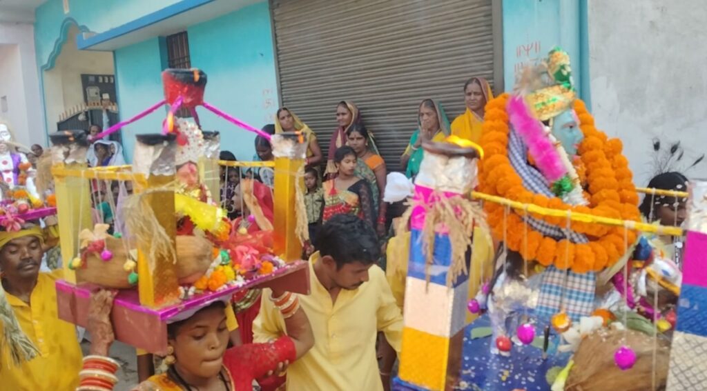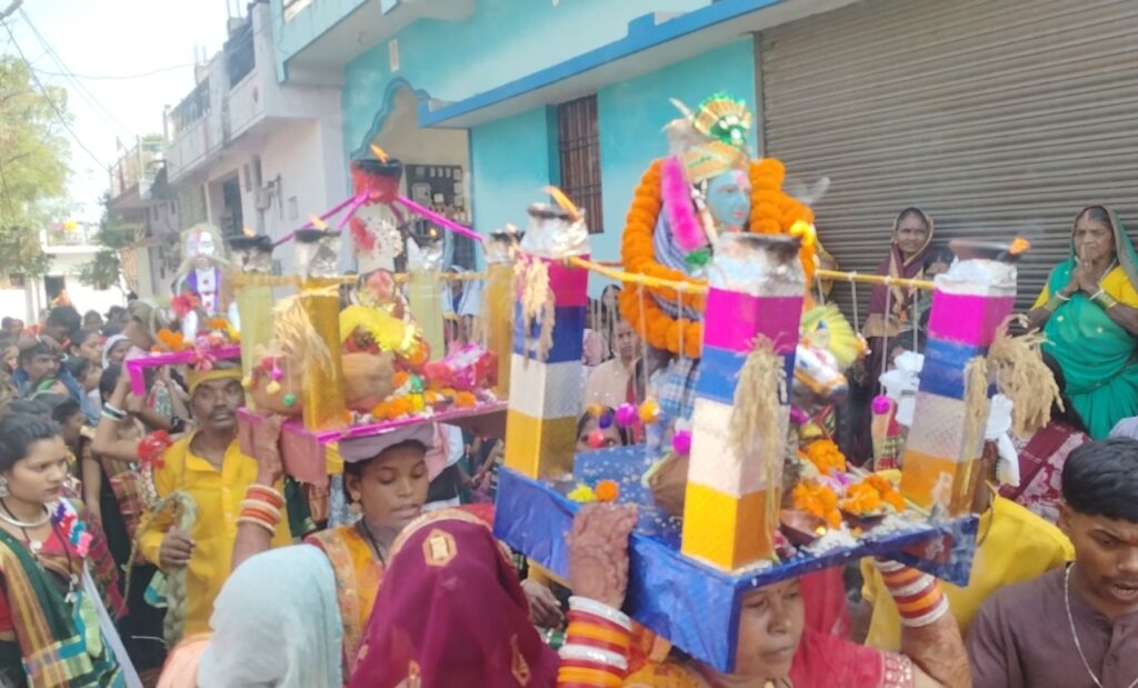 पूरे मोहल्ले में सुबह से ही पारंपरिक वेशभूषा में सजे-धजे महिलाएं और पुरुष ढोल-नगाड़ों की थाप पर झूमते नजर आए। पूजा स्थल पर भक्ति गीतों और जयकारों से वातावरण गूंज उठा। गौरा-गौरी की मिट्टी की प्रतिमाओं की पूजा विधि-विधान से की गई। इसके बाद भव्य शोभायात्रा निकाली गई, जिसमें समाज के सभी वर्गों के लोग शामिल हुए। महिलाएं सिर पर कलश और प्रतिमाएं लेकर आगे बढ़ीं, जबकि पुरुषों ने नाचते-गाते श्रद्धा और उल्लास का प्रदर्शन किया।
