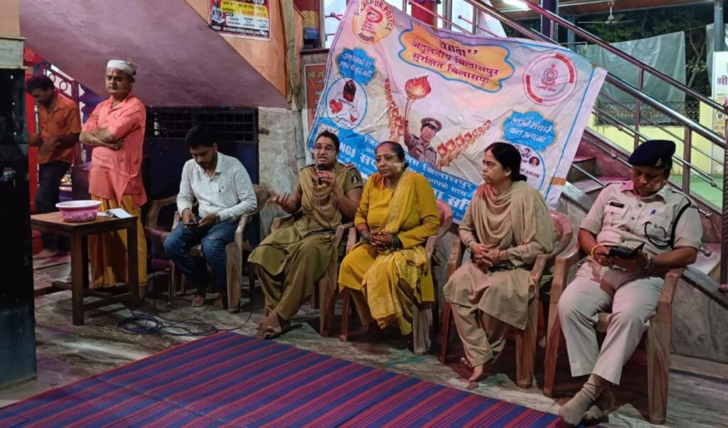 NGO सपना महिला समिति द्वारा आज दिन शनिवार को शनि मंदिर में महिला एवं बाल अपराध का कार्यक्रम रखा गया इस कार्यक्रम में महिला थाना से उपनिरीक्षक संतोषी अग्रवाल, महिला आरक्षक शिवानी सिंह, मालती तिवारी व आरक्षक दिनेश प्रधान उपस्थित थे उन्होंने महिलाओं के साथ हो रहे अपराध व बच्चों के साथ हो रहे अपराधिक गतिविधियों के बारे में जानकारी दी शनि मंदिर में उपस्थित अपार जनसमूह इस कार्यक्रम का लाभ लिया कार्यक्रम को सफल बनाने में श्री सुर्यापुष्पा फाउंडेशन ,सोमित धर, सात्विक सराफ, कुनाल केडिया,पायल सुर्यवंशी,गीता दुबे, अंजली केवट तरनजीत कुमार, जिग्यासा सराफ,सुदिप दुबे,तापस सरकार सुधा कंठ, निर्मला गुप्ता, संतोषी विश्वकर्मा, टिकेश्वर साव,आमना राजगीर, राजेश्वरी साव व मंदिर में उपस्थित अनेकों भक्त गण का भरपूर सहयोग मिला तथा मंदिर समिति ने उपस्थित सभी अधिकारियों का श्रीफल देकर सम्मानित किया तथा कहा की इस तरह के कार्यक्रम हमेशा यहां करेंगे इसकी जानकारी संगठन की अध्यक्ष सपना सराफ ने दिया