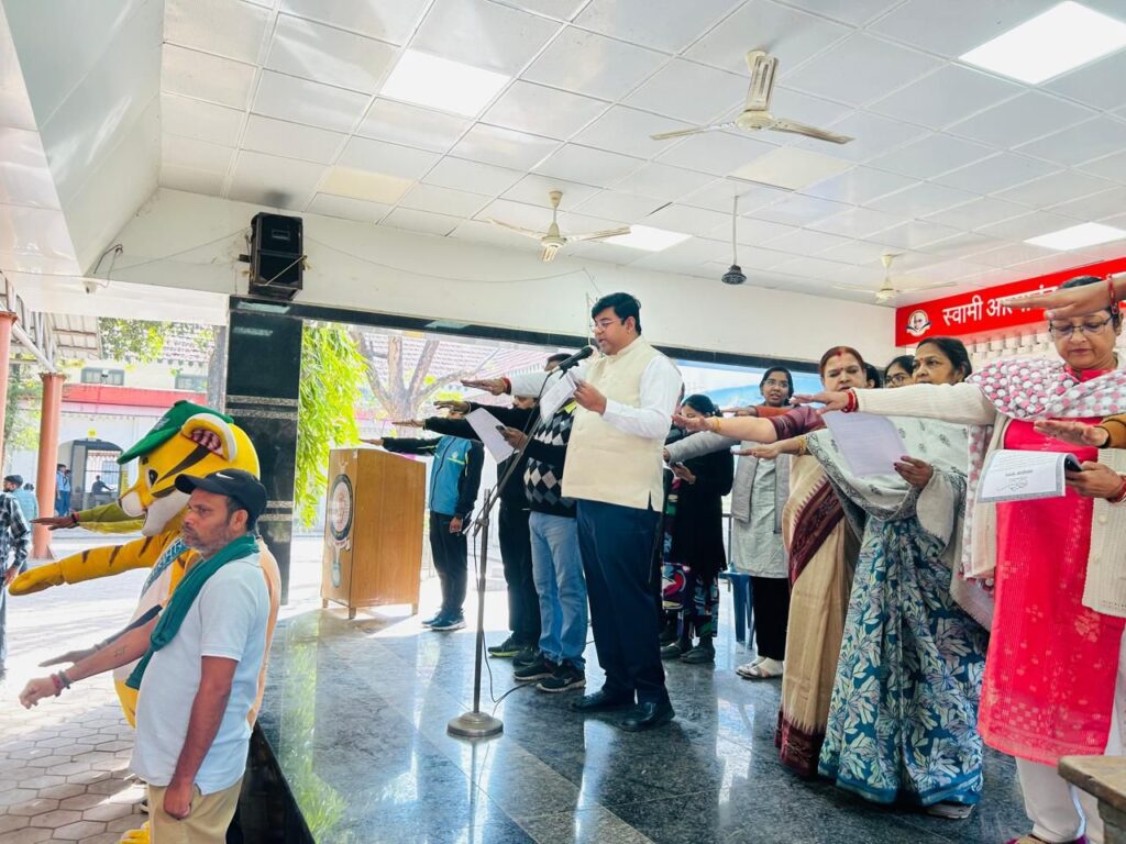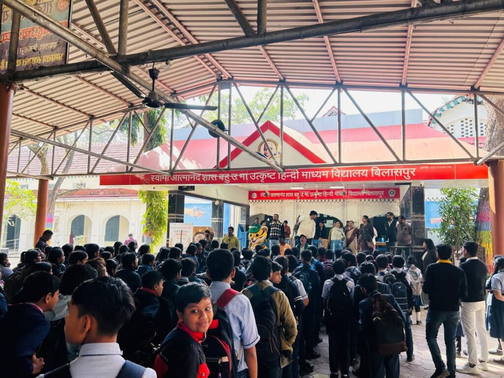 स्वामी आत्मानंद मल्टीपरपज स्कूल दयालबंद बिलासपुर में आज नगर पालिक निगम बिलासपुर के जोन कमिश्नर अनुभव सिंह द्वारा मिडिल प्रायमरी इंग्लिश मिडियम/हिंदी मिडियम स्कूल के छात्र,छात्राओं एवं शिक्षकों को स्वच्छता की शपथ दिलाई गई। उक्त कार्य में प्रभारी श्री.ए.एफ.हाशमी सर, श्रीमती. साधना शुक्ला मैडम, श्रीमती.आर.तिवारी मैडम, सोनार सर,साहू सर, इक्का सर, हर्ष दुबे सर, बानी मैडम, ममश्री मैडम, राशि देवांगन मैडम, नीलम चौधरी मैडम एवं सभी स्टॉफ द्वारा उक्त कार्य के संचालन में सहयोग किया गया. नगर पालिक निगम बिलासपुर के जोन कमिश्नर द्वारा 11.30 बजे स्कूल का निरक्षण किया गया ।और सभी छात्र,छात्राओं एवं शिक्षकों को स्वच्छता की शपथ दिलाई गई ।