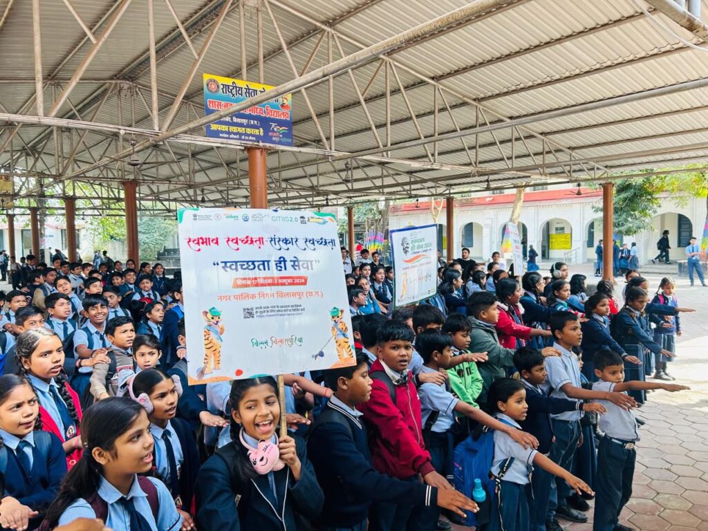 नगर पालिक निगम बिलासपुर के जोन कमिश्नर अनुभव सिंह द्वारा मिडिल प्रायमरी इंग्लिश मिडियम/हिंदी मिडियम स्कूल के छात्र,छात्राओं एवं शिक्षकों को स्वच्छता की शपथ दिलाई गई।