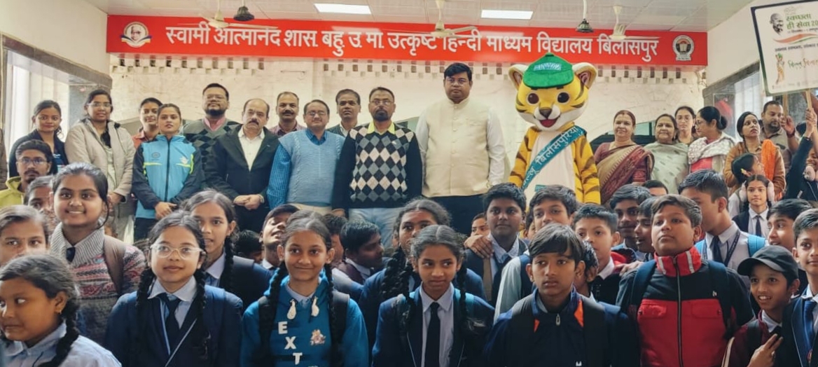 स्वामी आत्मानंद मल्टीपरपज स्कूल दयालबंद बिलासपुर में आज नगर पालिक निगम बिलासपुर के जोन कमिश्नर अनुभव सिंह द्वारा मिडिल प्रायमरी इंग्लिश मिडियम/हिंदी मिडियम स्कूल के छात्र,छात्राओं एवं शिक्षकों को स्वच्छता की शपथ दिलाई गई। उक्त कार्य में प्रभारी श्री.ए.एफ.हाशमी सर, श्रीमती. साधना शुक्ला मैडम, श्रीमती.आर.तिवारी मैडम, सोनार सर,साहू सर, इक्का सर, हर्ष दुबे सर, बानी मैडम, ममश्री मैडम, राशि देवांगन मैडम, नीलम चौधरी मैडम एवं सभी स्टॉफ द्वारा उक्त कार्य के संचालन में सहयोग किया गया. नगर पालिक निगम बिलासपुर के जोन कमिश्नर द्वारा 11.30 बजे स्कूल का निरक्षण किया गया ।और सभी छात्र,छात्राओं एवं शिक्षकों को स्वच्छता की शपथ दिलाई गई ।
