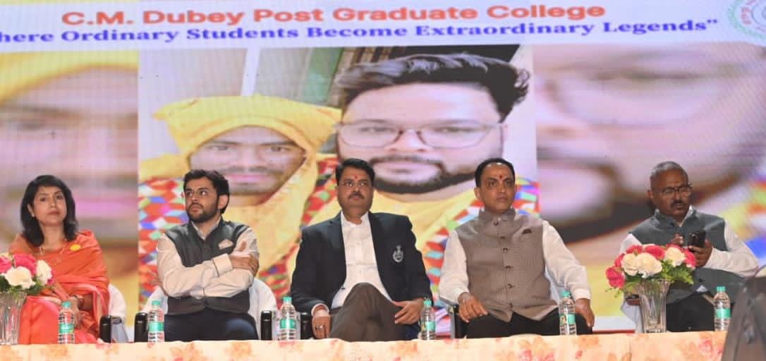 कार्यक्रम के मुख्य अतिथि श्री रजनेश सिंह जी, वरिष्ठ पुलिस अधीक्षक (एसएसपी) बिलासपुर, प्रशासकीय समिति के अध्यक्ष डॉ संजय दुबे जी, प्रशासकीय समिति सदस्य श्री अमन दुबे जी, बी.एड. प्राचार्या श्रीमती डॉ. अंजली चतुर्वेदी जी, प्राचार्य डॉ.संजय सिंह जी एवं श्रीमती श्रद्धा दुबे जी मंचासीन रहे।