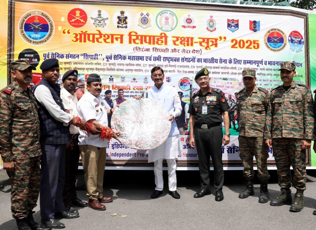 दिल्ली। पूर्व सैनिक संगठन “सिपाही” (पूर्व सैनिक महासभा) के अभियान “ऑपरेशन सिपाही रक्षासूत्र” इस वर्ष छत्तीसगढ़ का मान बढ़ाते हुए फिर से 12 लाख 21 हजार भारतीय सैनिकों को अपने मिट्टी से तिलक कर दिया है। और आज बिलासपुर वापस पहुंचा है। 6 अगस्त 2025 को 12 लाख 21 हजार रक्षासूत्र भारतीय सेना मुख्यालय को ससम्मान समर्पित किए गए हैं ।