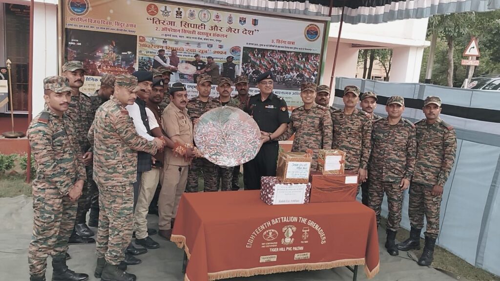शीर्षक 02 कारगिल विजेता व् परमवीर चक्र धारक रेजीमेंट “18 ग्रेनेडियर्स ” ने किया “सिपाही रक्षासूत्र” का स्वागत, रक्षा राज्य मंत्री और उप-सेनाध्यक्ष ने ससम्मान ग्रहण किया 12 लाख 21 हजार सिपाही रक्षासूत्र।