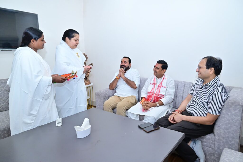 10 अगस्त बिलासपुर 2025। रक्षाबंधन के पावन पर्व पर प्रजापिता ब्रह्माकुमारी ईश्वरीय विश्व विद्यालय बिलासपुर की मुख्य शाखा टेलीफोन एक्सचेंज रोड स्थित राजयोग भवन में केंद्रीय राज्य मंत्री भ्राता तोखन साहू जी का सेवाकेन्द्र में आगमन हुआ। उन्हें सेवाकेंद्र संचालिका बीके स्वाति दीदी एवं बीके संतोषी दीदी के द्वारा रक्षा सूत्र बांधकर रक्षाबंधन का