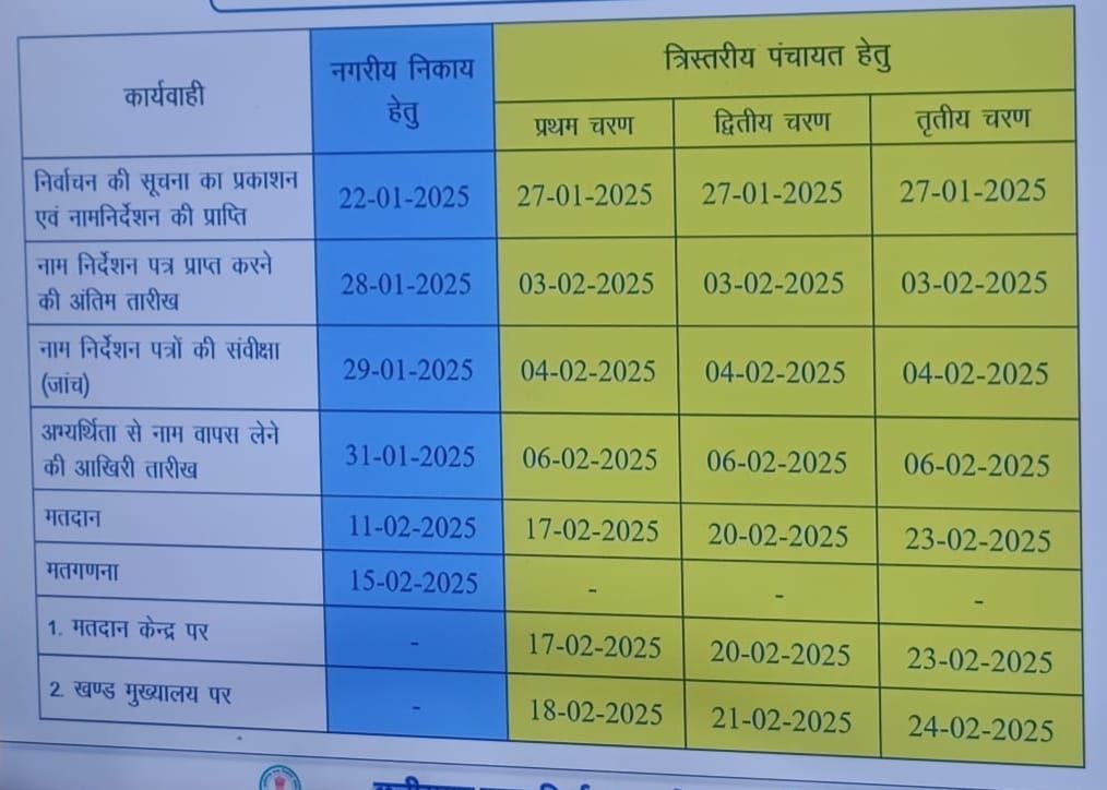 लंबे जद्दोजहद और इंतजार के बाद आखिरकार छत्तीसगढ़ में नगरीय निकाय और त्रिस्तरीय पंचायत चुनाव की घोषणा कर दी गई छत्तीसगढ़ में नगरीय निकाय के लिए 22 जनवरी से नामांकन प्रक्रिया शुरू होगी तो वही 11 फरवरी को मतदान और 15 फरवरी को मतगणना होगी इसके साथ ही त्रिस्तरीय पंचायत चुनाव के लिए भी चुनाव की घोषणा कर दी गई है त्रिस्तरीय पंचायत चुनाव 17 20 और 23 फरवरी को होंगे तीन चरणों में त्रिस्तरीय पंचायत चुनाव संपन्न कराए जाएंगे इसके लिए 27 जनवरी से नामांकन की प्रक्रिया शुरू हो जाएगी तो वही छत्तीसगढ़ राज्य निर्वाचन आयोग ने बोर्ड परीक्षा के पहले चुनाव को संपन्न करने का निर्णय लिया है 10 नगर निगम ,नगर पालिका 49,नगर पंचायत 114 मैं मतदान होगा तो पंचायत चुनाव तीन चरण में 17,20 और 23 फरवरी को मतदान और उसी दिन मतगणना होगी। 24 फरवरी तक चुनाव संपन्न हो जाएगा।पंचायत….. 27 जनवरी से नामांकन 3 फरवरी तक चलेगी। वही नगरीय निकाय के नामांकन प्रक्रिया की बात करें तो 22 जनवरी से शुरू होकर यह 29 जनवरी तक चलेगी तो 31 जनवरी को नाम वापसी का अंतिम दिन होगा क्योंकि मार्च महीने से बोर्ड की परीक्षाएं शुरू हो रही है ऐसे में छत्तीसगढ़ राज्य निर्वाचन आयोग बोर्ड परीक्षा के पहले ही चुनाव प्रक्रिया को संपन्न कर लेगा